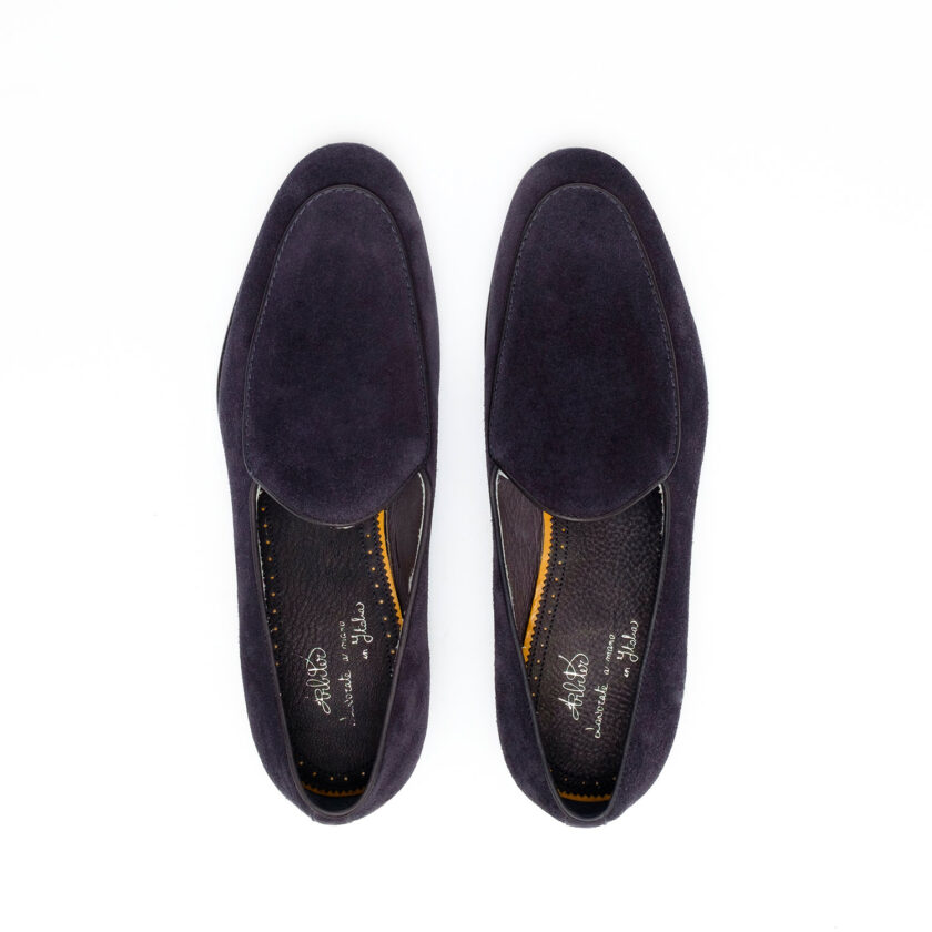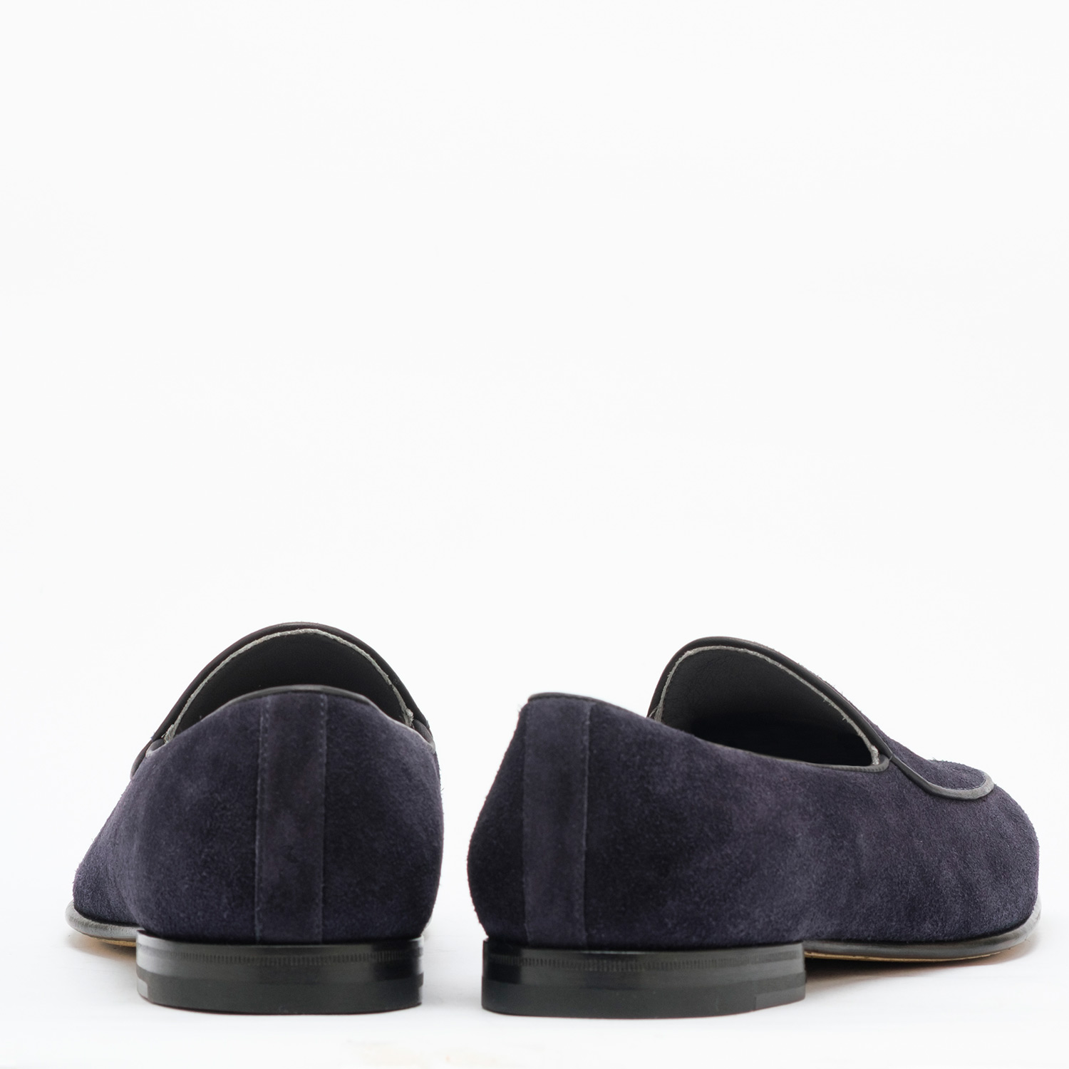 Caracciolo: un mocassino essenziale in camoscio visone blu che, come tutti gli altri della nostra Linea Partenope, risulta così morbido e flessibile, da poterlo piegare e contenere in una tasca.