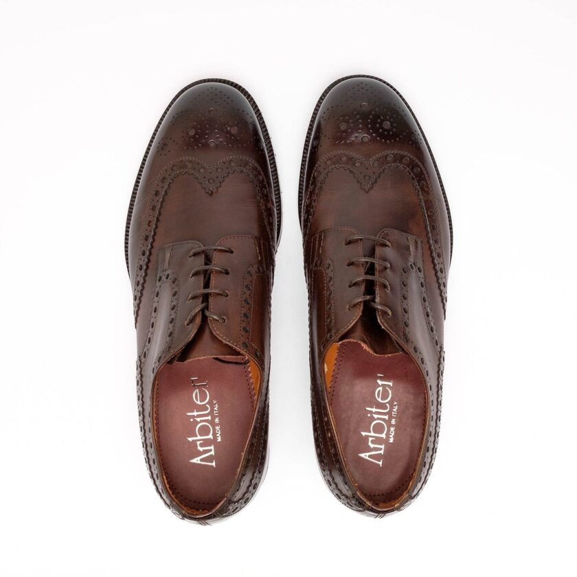Per un look classico ma ricercato, la scelta migliore è DUBLINO: un derby stringato realizzato in un vitello marrone anticato a mano e in pieno stile brogue tradizionale.