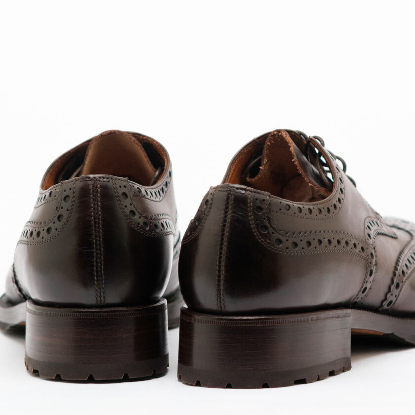 Si distingue per il fondo in doppio cuoio reso funzionale dall’aggiunta di un’isola in gomma. Il risultato è una scarpa robusta ma al contempo particolarmente raffinata.