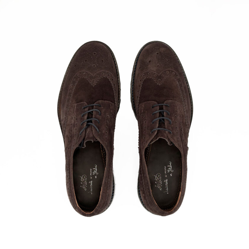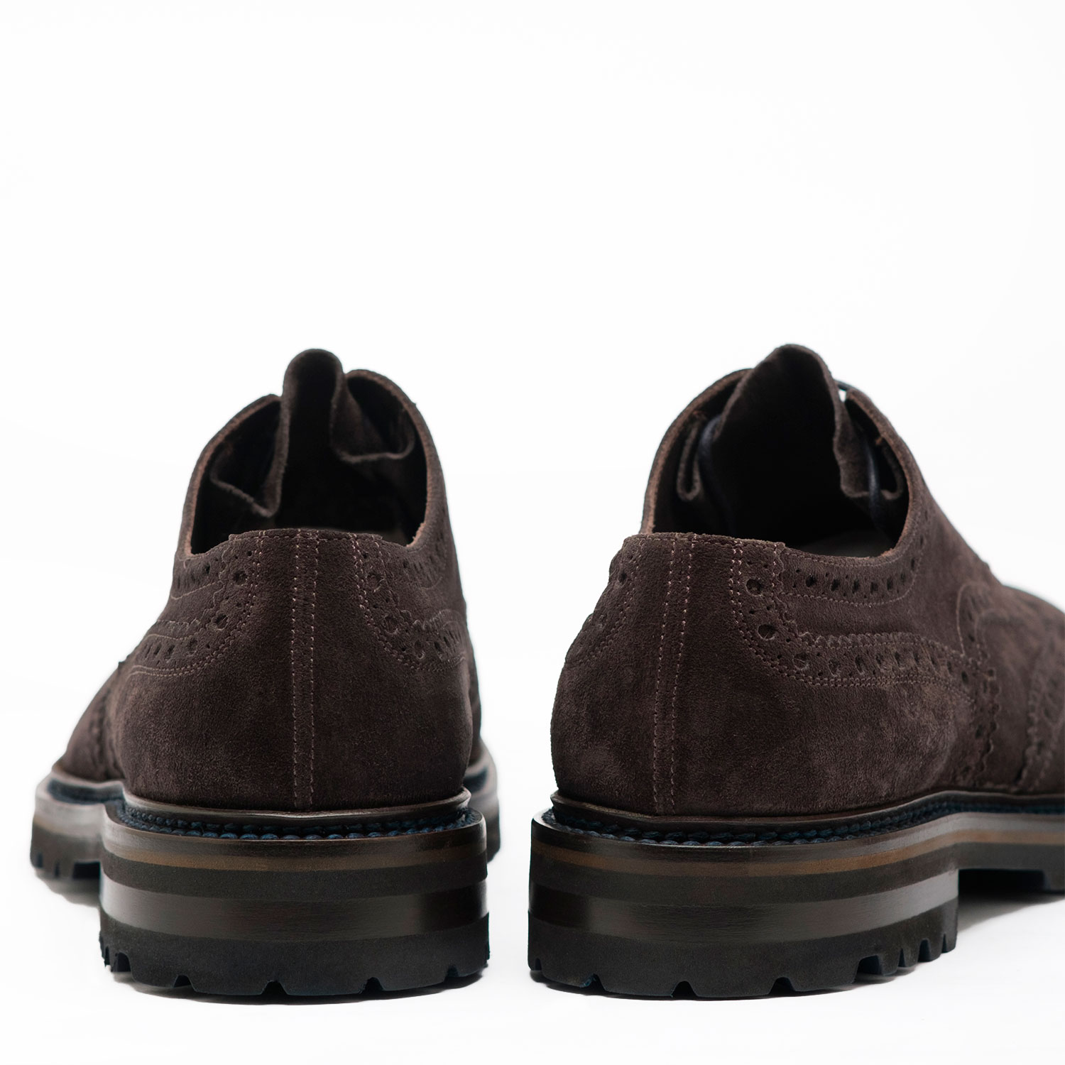 MONACO è la stringata perfetta per essere indossata nelle più svariate occasioni , fino ad un contesto casual. Realizzata in camoscio visone e bucature in pieno stile brogue tradizionale, si distingue per la particolarità del fondo: ad un primo strato in cuoio, ne segue uno ulteriore in gomma.