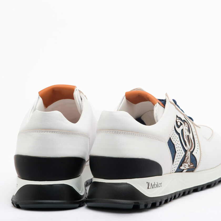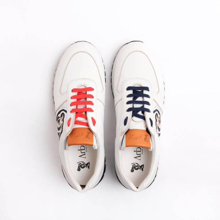 Olympia è una sneaker completamente lavorata a mano dai nostri artigiani esperti, per questo di elevata manifattura. Realizzata in pelle di vitello bianca di alta qualità con dettagli blu, la nostra Olympia è ben più di una classica scarpa sportiva: ha una suola bianca di circa 3,5 cm ed è inoltre dotata di plantare anatomico estraibile rivestito in vitello.